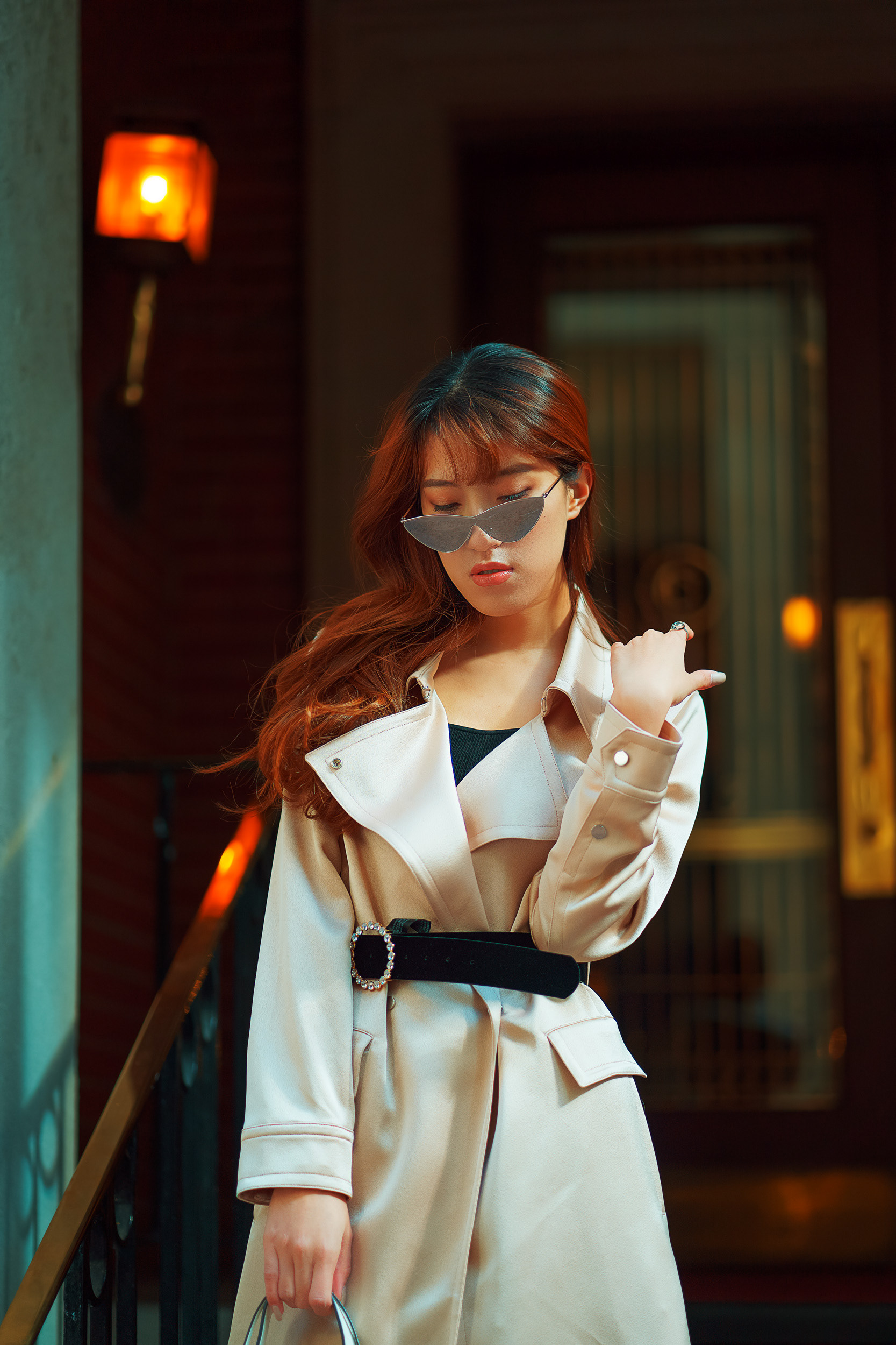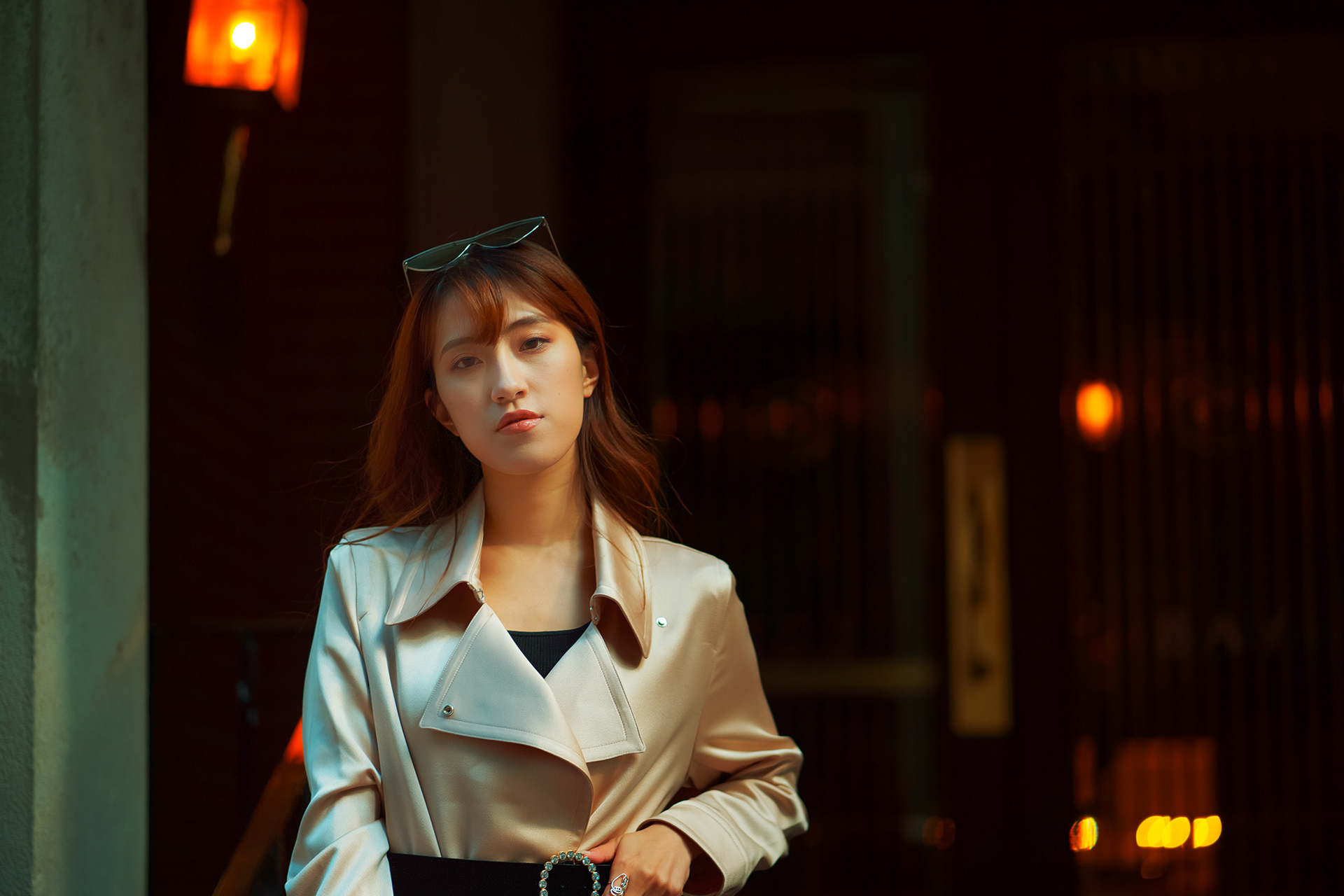 I love colours and I'm always seeking ambient colours that can enhance the vibrance of my images. While shooting outdoors downtown Toronto with Elva we found this slightly lit door that I knew would complement the image.