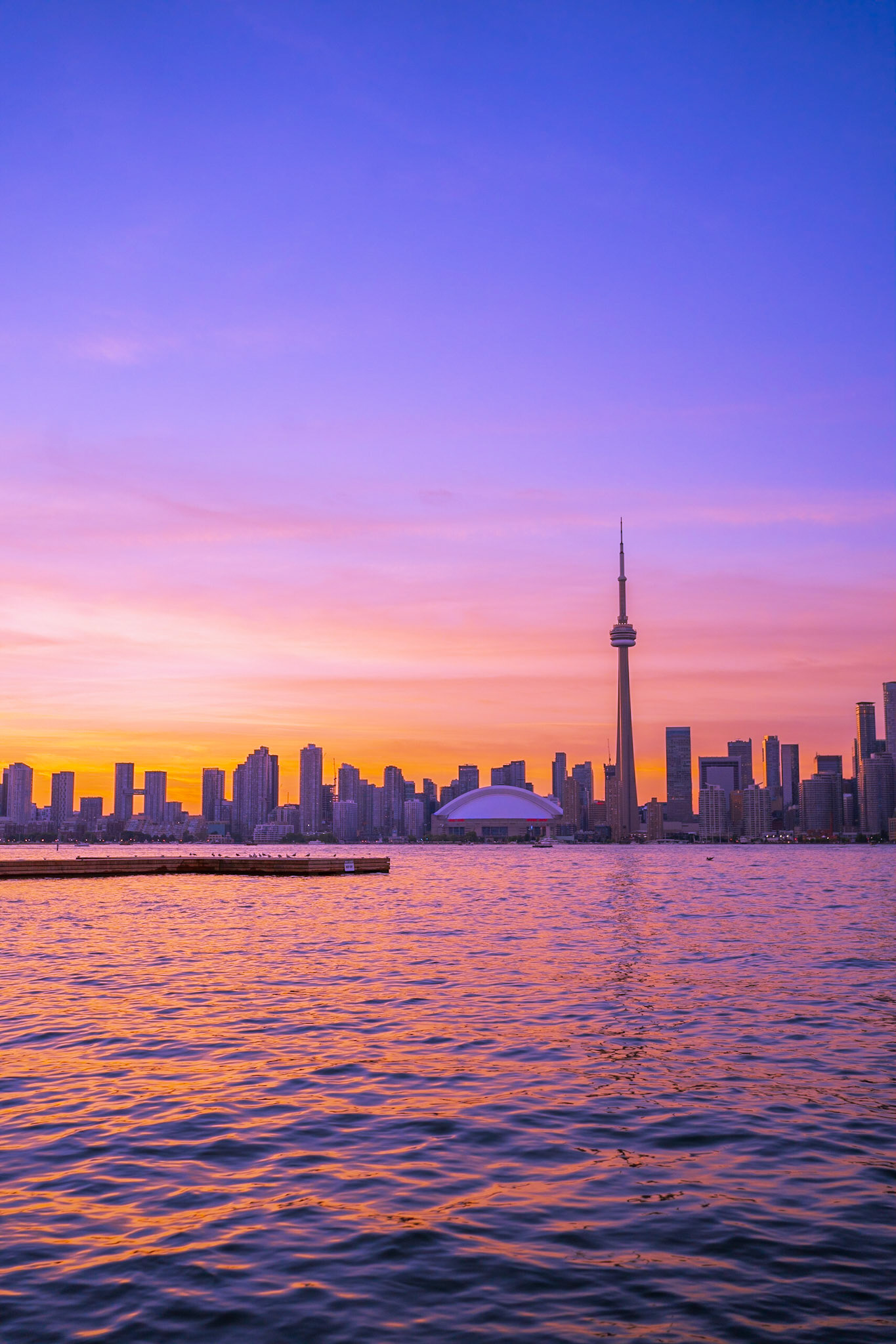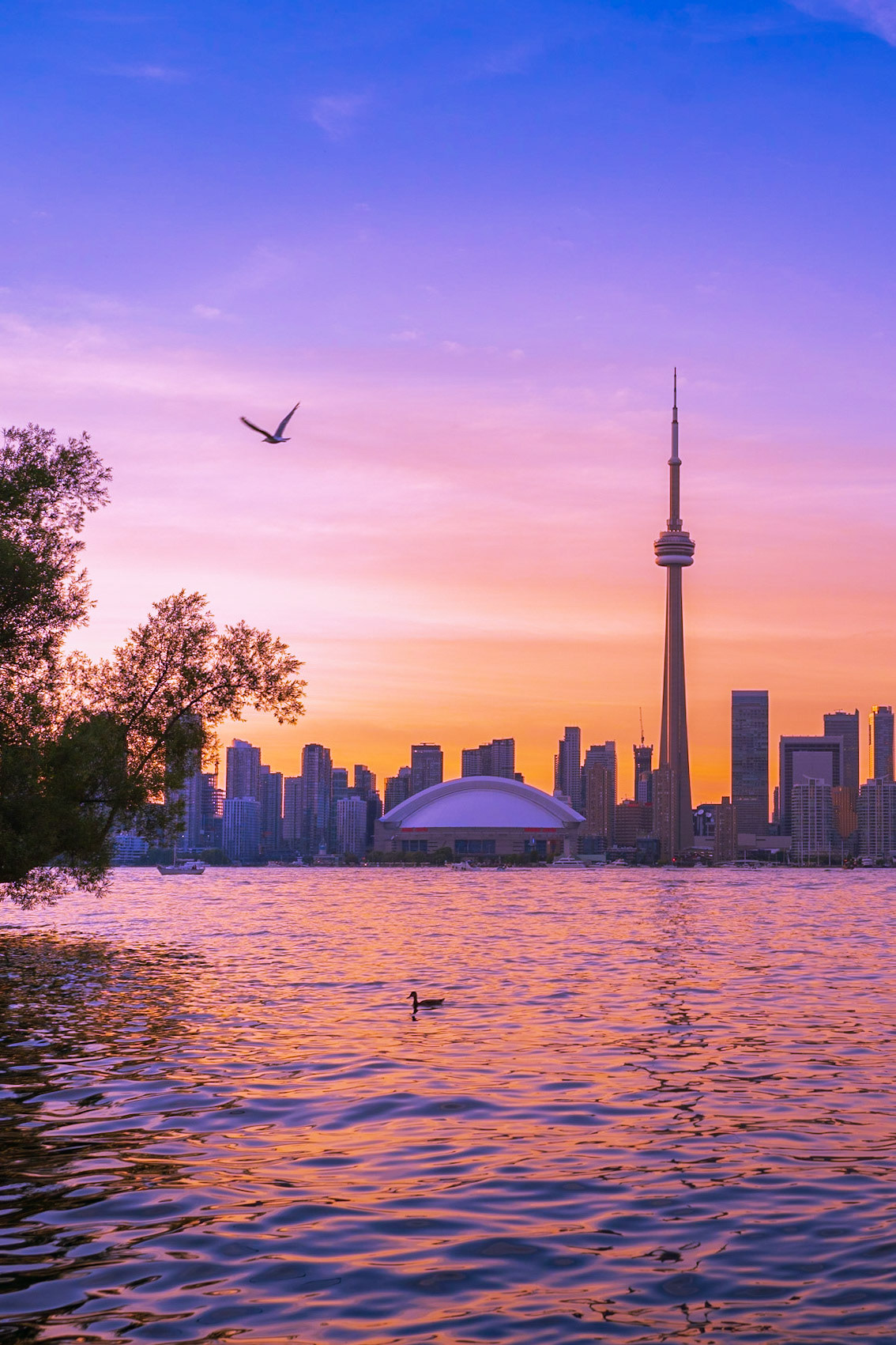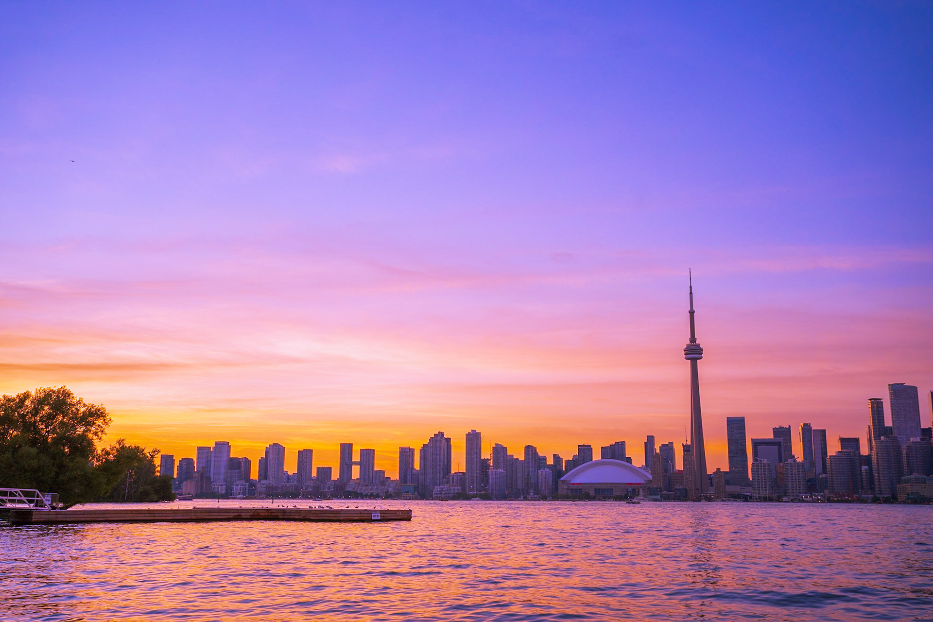 Views of the Toronto skyline at sunset from Toronto Islands. Summer 2020