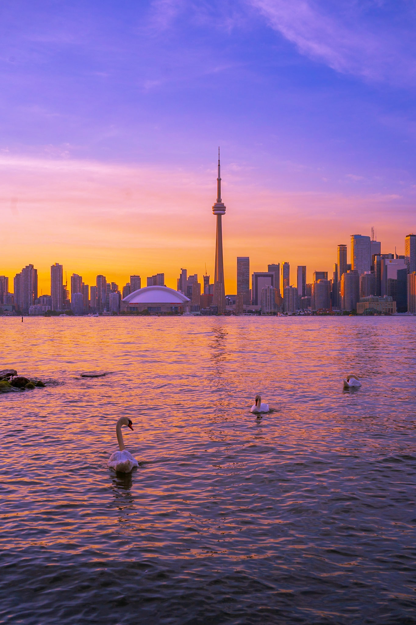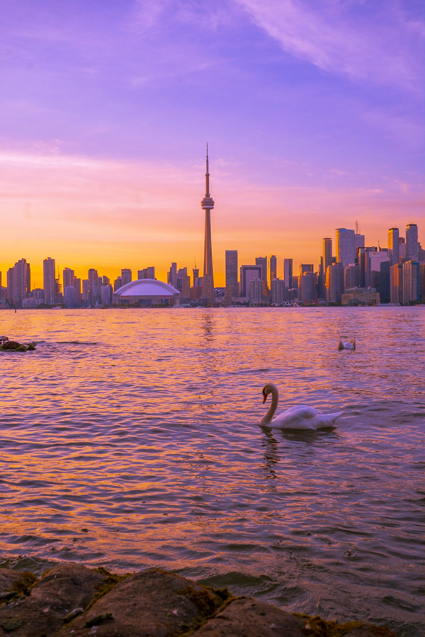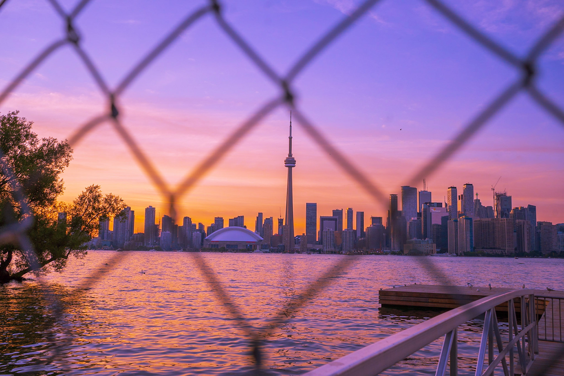 Views of the Toronto skyline at sunset from Toronto Islands. Summer 2020